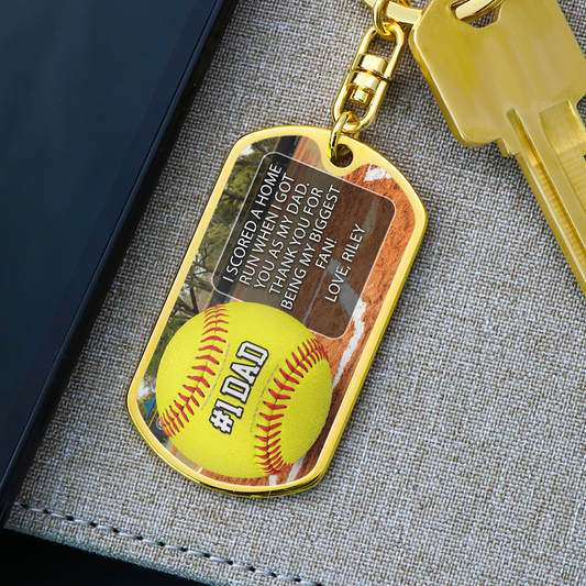 #1 Softball Dad Custom Premium Keychain